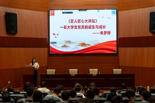 朱梦婷以《一名大学生党员的诞生与成长》为题作党课宣讲,系统性地介绍了党员的发展流程与考察要求,帮助学员明确成长路径与努力方向。在讲解思想汇报撰写时,她指出,除了要掌握基本格式与书写规范,更要深入学习党的理论思想、关注时政热点,并围绕自身实际进行总结反思,做到由面及点、以小见大。她以本科生第三党支部的七大工作模块、“十个一”学习计划为切入点,展示了支部党员主题汇报、实践参观、志愿服务、仪式教育等风采,并强调,“组织上入党,一生一次;思想上入党,一生一世”,同学们应在参与支部建设、组织生活中,充分发挥党员的先锋模范作用和党支部的战斗堡垒作用,强化身份意识和责任担当,不断提升自身的思想觉悟与政治素养,在组织的培养考察和教育管理中成为更好的自己、更好地服务他人。