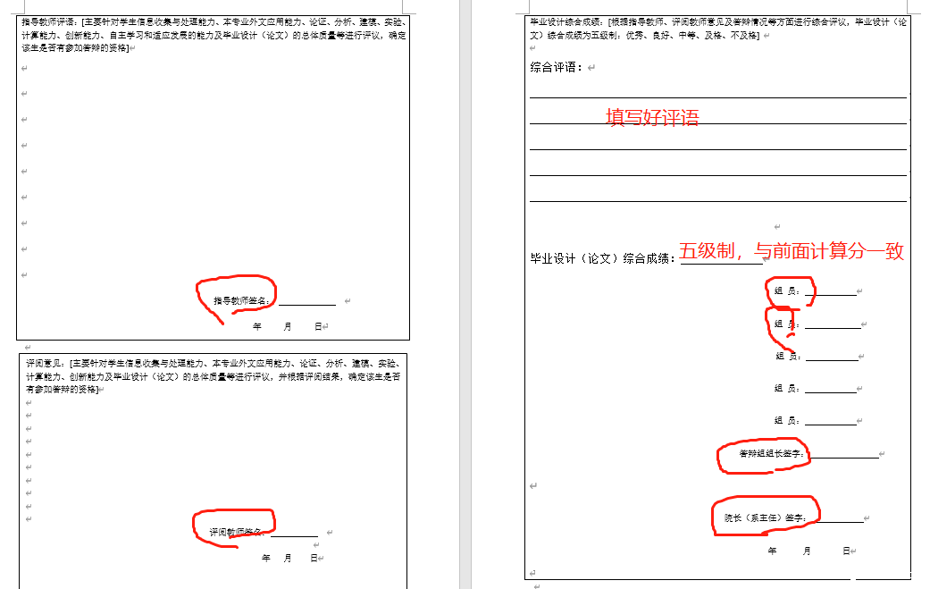 2. 第7项成绩评定表,答辩结束不要装回资料袋,填好成绩写好评语签好字后,由答辩组收齐单独上交,要求在5月23日前交到致远楼905室。