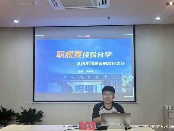 李威鸿以从抗拒到热爱的成长蜕变为主线,生动讲述了自己的备赛历程,鼓励同学们一定要充分相信自己可以不断挑战自我,在比赛中历练与蜕变。他现场演示了如何运用人工智能工具提升备赛效率、如何通过各大平台学习PPT动态设计以及掌握最新赛事资讯等,朴实诚恳、深入人心。