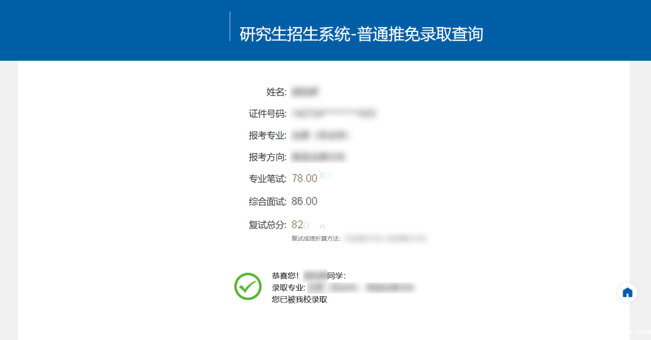1.在普通推免模块中点击【成绩与拟录取查询】,可查询到成绩,以及录取状态。