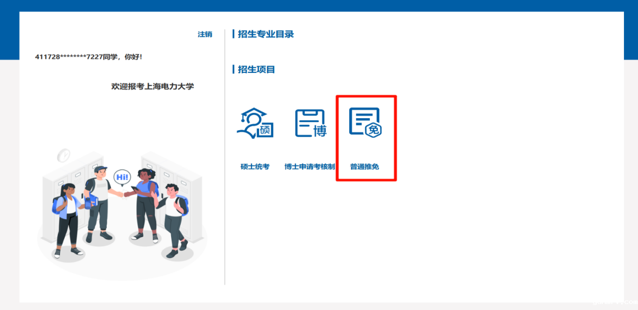 1.点击进入【普通推免】模块,在模块中点击【报名材料补充】;