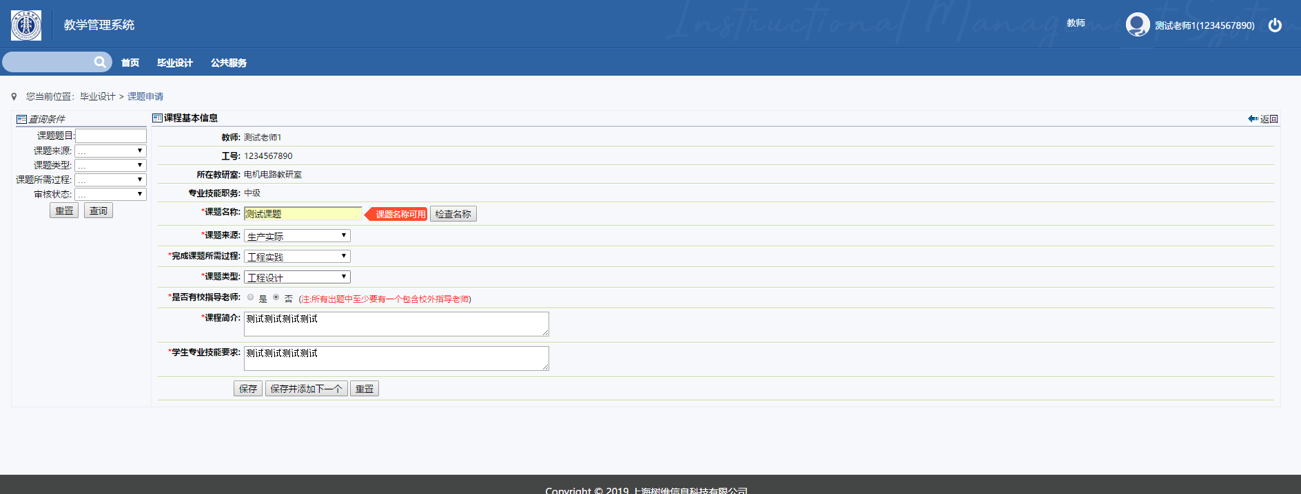 3、11月13日新进老师(第一次带毕设的老师)登陆系统出题:要求出题数为3~4个。