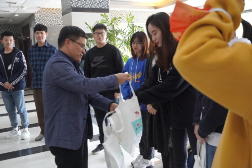 叶华刚代表学院为26名进博“小叶子”发放学院慰问品,对同学们圆满完成进博会志愿者工作表示感谢,他表示同学们起早摸黑,每日步数2万多,用灿烂的微笑和周到的服务,带给了参展宾客深刻的印象,为学院、学校争得了荣誉,践行了良好的志愿者精神。希望同学们继续把志愿者精神发扬光大,带动身边更多的同学热心志愿者服务。
