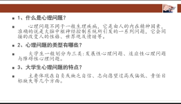 活动前期以金数据调研问卷的方式,征集心理委员实际工作中遇到的以及感兴趣的心理相关问题。每月开展一次,通过线上会议的形式,由老师针对同学们感兴趣和希望了解的问题,进行答疑解惑,增强心理委员的对谈心谈话的理解,提高同学们参与心理活动的积极性。