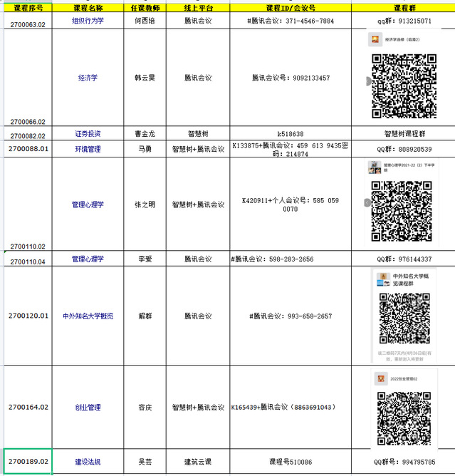 数理学院2021-2022学年第二学期线上课程详细安排