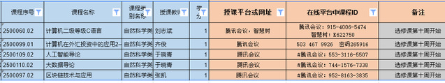 院所开设的全校选修课拟采用线上教学,具体安排如下表。上课时间按照教学管理系统课表安排执行,请相关同学及时入班,按时参加线上课程,并根据课程使用的平台做好准备。