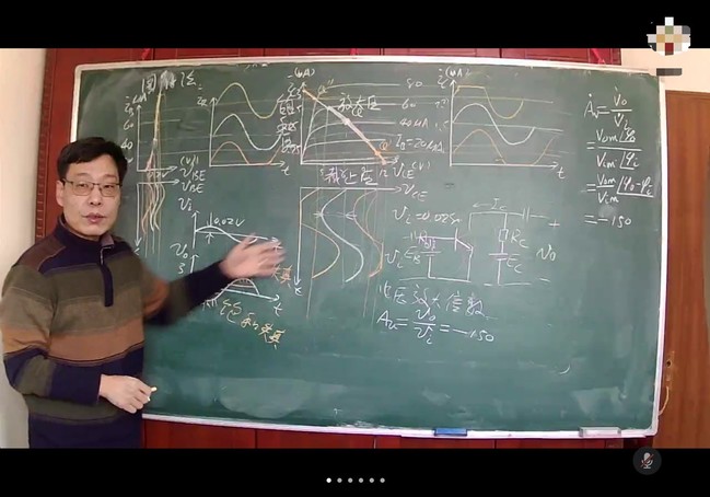 王禾兴老师在自己家中挂上了黑板,重要原理和公式进行板书推导。同学们如同坐在教室的第一排,感受到课堂的温度,积极参与互动。