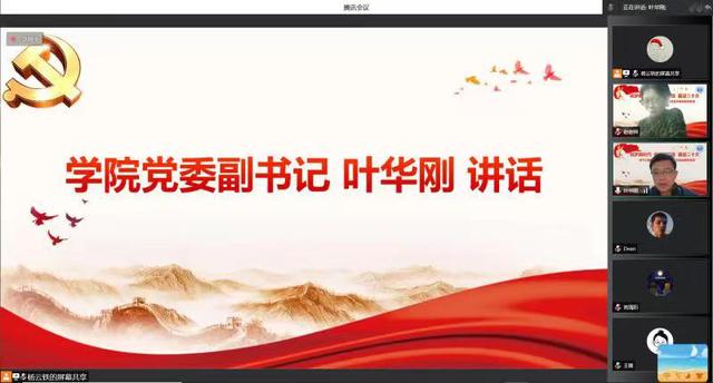 叶华刚介绍了学生党员积极参加疫情防控志愿者工作发挥带头作用的情况,结合学习习近平总书记在庆祝中国共青团成立100周年重要讲话精神,对全体毕业生党员提出三点期望:第一,不忘初心,牢记使命,在疫情防控工作中勇于担当作为;第二,爱校荣校,感恩奉献,在学院毕业生毕业及就业工作中发挥带头作用;第三,思源思进,诚实守信,始终牢记党员身份,在新岗位中建功立业。