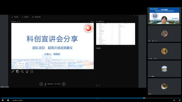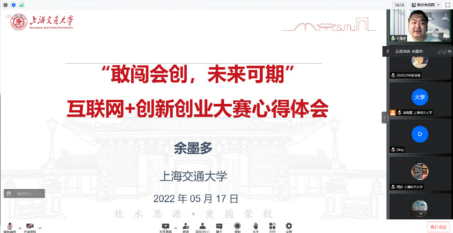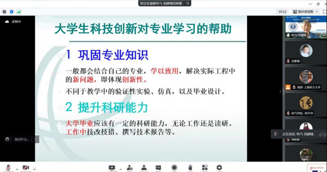 于5月17日晚举办“互联网+”线上赛事解读及经验分享会。邀请中国国际互联网+创新创业大赛金奖指导老师、中国青年五四奖章获得者上海交通大学黄文焘教授,总决赛金奖获得者余墨多博士进行经验分享。电气工程学院院长李东东、副院长李晓露、学院教师及学生近300人参会,会议由周波老师主持。