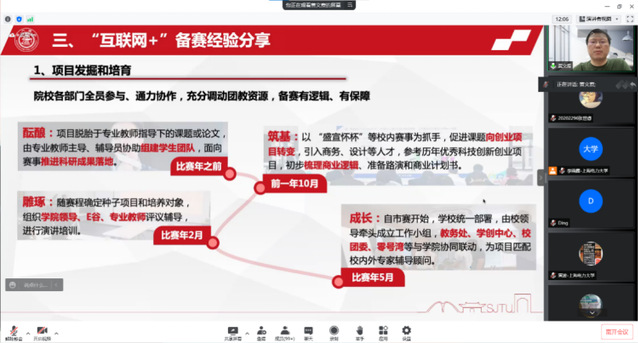 分享会结束后,两位主讲嘉宾和在会师生共同就“低年级同学如何参与提高参赛能力”“如何同时兼顾专业性与简洁性”等问题互动解答,帮助师生解疑释惑。