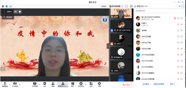 在“疫情中的你和我”案例交流环节中,五位师生分享人从自身的抗疫故事出发,结合自己所见所闻所感,向学员们诠释了平凡中的伟大,体现了当代大学生的责任与担当,彰显了青年教师的职责和使命,为全体师生树立了良好的榜样。