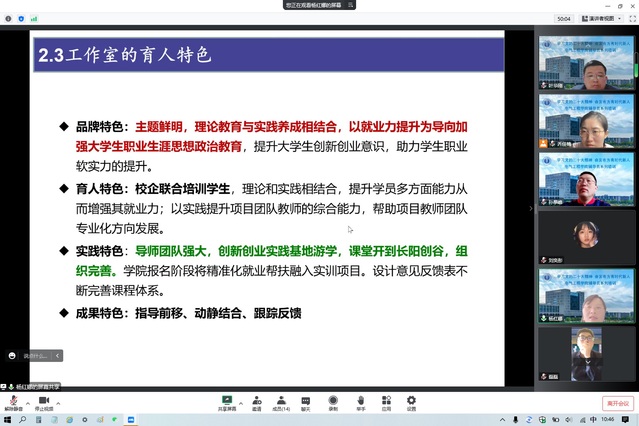 杨红娜从辅导员专业化发展的意义,专业化发展的案例,专业化发展的路径三个方面出发,结合辅导员专业发展要求和自己多年的辅导员工作经历,介绍了辅导员专业化发展的内涵与意义,辅导员专业化发展的标准,并对辅导员工作质量提升和职业发展进行了全面解读,并以自己创建的“上海高校职业(生涯)发展教育工作室”为案例,详细讲述了朝日之窗生涯工作室从成立、发展到成熟的建设过程,为与会辅导员提供了生动鲜活的借鉴经验。