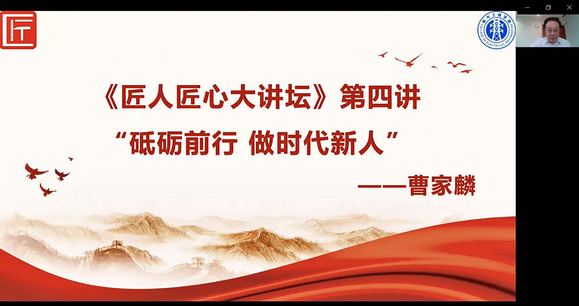 为深入学习贯彻党的二十大精神,引领青年大学生用习近平新时代中国特色社会主义思想武装头脑,深化爱国主义、集体主义、社会主义教育,着力培养担当民族复兴大任的时代新人,11月11日, 举行“匠人匠心大讲坛”第四期讲座,邀请全国劳动模范、 原校长曹家麟教授担任主讲,学院辅导员、研究生党员代表、分党校第十五期入党积极分子培训班学员、第十二期发展对象培训班学员等线上形式参加。讲座由学院党委副书记叶华刚主持。