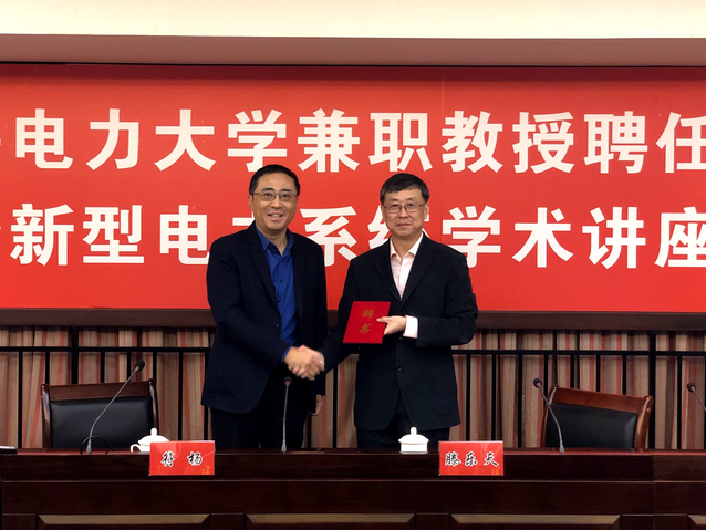 11月22日下午,我校兼职教授聘任仪式暨新型电力系统学术讲座在杨浦校区行政中心举行。原国家电网公司智能电网研究院院长、上海市电力行业协会技术委员会主任滕乐天受聘我校兼职教授。我校副校长符杨、上海市电力行业协会副秘书长陆融、上海市电力行业协会政研部主任李淑红出席,我校人事处处长刘永生主持会议。学校能源电力科创中心、科研处、电气学院相关领导与会, 部分教师、博士生与会并聆听讲座。