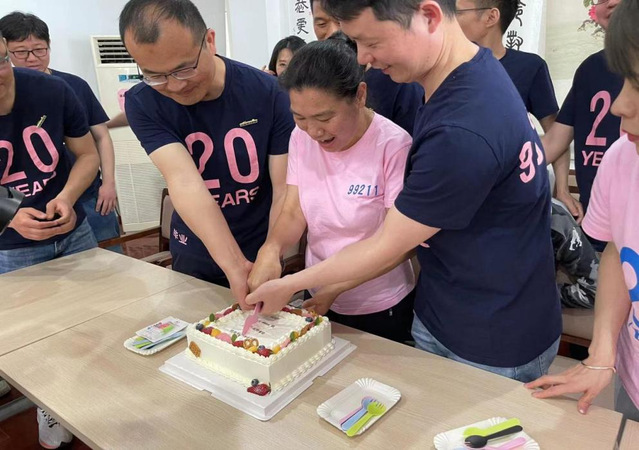 丛亮致欢迎辞,她首先感谢校友们长期以来对母校的关心和支持,随后简要介绍了学校近年来的发展与变化,并祝全体校友生活愉快,工作顺利。王忠华代表 欢迎校友回家,介绍了学院近年的发展情况,并向校友赠送了纪念校徽和学院宣传册。校友们追忆往昔时光,共叙校园情谊,畅聊近年来的经历、变化,共同回顾校园趣事,交流人生感悟。校友办为返校班级精心准备了毕业20周年的蛋糕,在场校友老师共同分切蛋糕庆祝相聚。