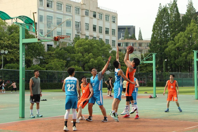 在校企双方队员赛场就位后,阳光电源上海研发中心代表队队长王昊和 篮球队队长鲁扬分别对两队情况进行介绍并进行了友好交流互动,随着裁判员的一声哨响,篮球友谊赛拉开序幕。
