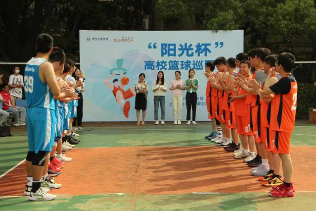 为丰富大学生文体活动,加强校企合作交流,5月26日, 与阳光电源股份有限公司篮球队举行了“以阳光之名 展电力风采”篮球友谊赛。阳光电源光储集团户用及分布式事业部研发中心副总经理薛丽英, 辅导员乔佳楠、张文文,阳光电源上海研发中心篮球队、 篮球队及部分学院学生等参加本次活动。