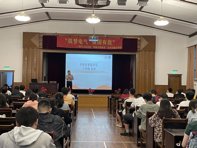 励志讲坛伊始,叶华刚介绍了学院将“赋能光明使者”大学生励志讲坛作为学院大学生思想政治教育的建设品牌,邀请电力行业劳模、优秀老师及优秀青年代表等与同学们面对面,分享励志成长故事,赋能未来光明使者,引领大学生健康成长成才。他勉励同学们要牢记习近平总书记的殷殷嘱托,坚定信仰、信念、信心,谨记“勤勉务实、追求卓越”的院训,在服务人民、奉献社会中展现靓丽的青春风采,在实现中华民族伟大复兴的时代洪流中踔厉奋发、勇毅前行,努力成长为堪当民族复兴重任的时代新人。