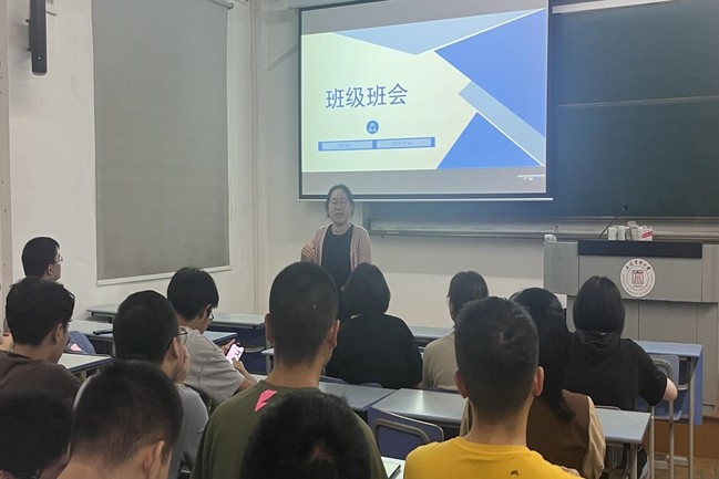 辅导员也向同学们介绍了本学年学校的课程安排、毕业实习、毕业设计等各环节安排,强调大四上学期是确定未来方向的重要时期,同学们要结合自身的实际情况,合理规划未来的方向,在确定目标以后就要尽全力完成目标。