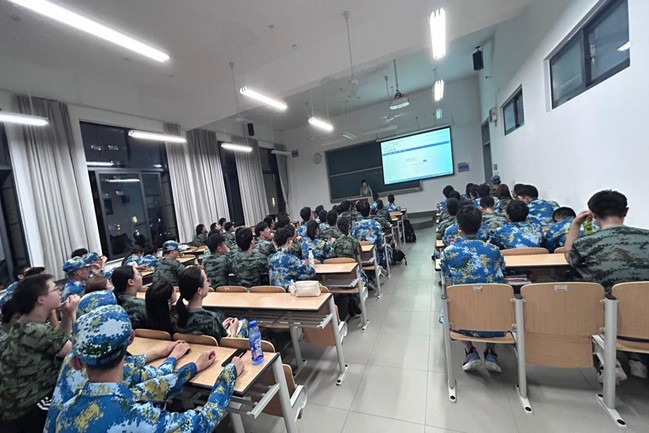 新生首日教育上,为了引导学生更好地适应大学生活,融入新集体,促进班级同学们之间的交流,增强同学们之间的了解,提高班级凝聚力,大一辅导员精心设计“放飞梦想”团辅环节,并在会上向新生详细讲解综测认定及奖学金评定等相关事项,鼓励学生做好开学心态调适,认真对待大学每一场期末考试,做好新学期的短期规划及大学生涯的长期规划,用实际行动擦亮青春底色。首日教育上还特邀了三位教官分享军营生活以及参军心得,和同学们分享大学生参军入伍的经历,从军旅生涯、个人成长、生活保障等多个方面介绍。通过教官们的分享,新生们对于中国军人身上的优秀品质也有了更加深入的了解。新时代的青年学子,也应该以饱满的热情和昂扬的斗志,投身到祖国最需要的地方去,在实现强国梦、强军梦的伟大征程中挥洒汗水、奉献青春、实现价值。邀请三位优秀毕业生以视频的形式分享了自己的学习经验并送上了真挚的祝福,引导新生们树立正确的人生目标和方向,为自己的未来做好充分的准备。