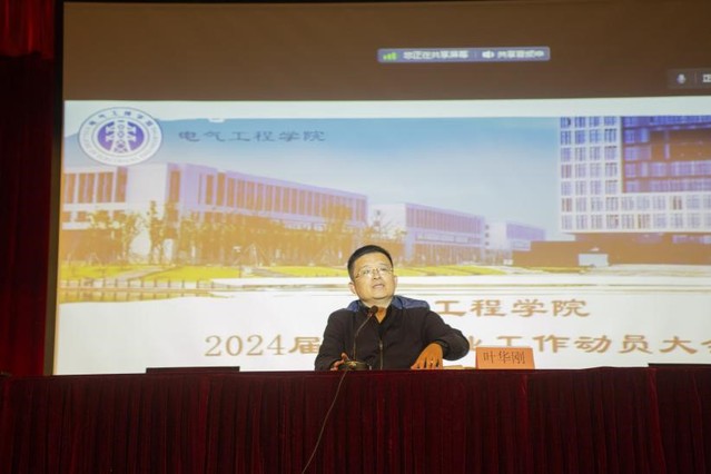 叶华刚介绍了2024年的就业形势及往届毕业生的就业去向情况,并对做好2024届毕业生就业工作做好动员。他希望同学们全面了解正确认识当前就业形势,关注就业信息,确立好个人就业目标,做好就业规划;在求职就业的过程中,要重视个人学业,顺利毕业,尽早就业;面对挫折和困境,要注意调整好个人状态和心态。学院及各位老师将一如既往为各位毕业生同学们做好就业指导、就业信息发布、简历面试指导等相关工作,从同学们的实际需求出发,关注关心就业困难同学,给予每位同学提供相应帮助和支持。他勉励同学们,要谨记“勤勉务实,追求卓越”的院训,勇于担当新时代电气学子的责任,将个人理想与国家需求结合起来,为国家电力事业发展贡献自己的力量。