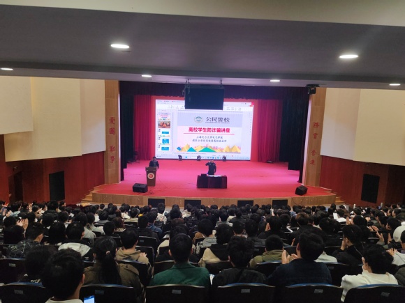 为进一步提高学生防诈骗意识,提升识骗、防骗能力,3月22日, 开展大一年级学生防诈骗安全讲座,邀请临港高校派出所副所长张华担任主讲, 辅导员朱梦婷、张文文、程蓓佳及全体2023级学生参加。讲座由校保卫处治安科科长王旭主持。