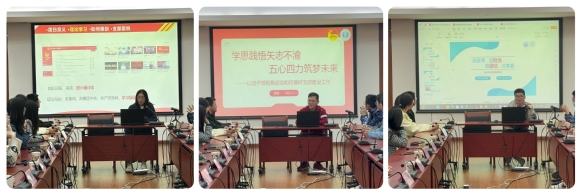 侯嘉琪以“如何策划组织一场优秀团日活动”为主题展开分享。她从团日活动的意义出发,从理论学习和活动策划两方面结合自己所在团支部的实践经验进行了介绍,重点强调了班委与支委合作的力量对于激发团队活力、提升活动效果的重大意义。胡彬以 “学思践悟矢志不渝,五心四力筑梦未来”为主题,从“红心、初心、重心、恒心、信心”和“脚力、眼力、脑力、笔力”展开交流,阐述了青年团员应如何坚定理想信念、积极参与社会实践、志愿服务和科技创新,以此来不断提升个人综合素质,将“小我”融入“大我”,服务社会和国家的发展。陈非凡分享了团务工作的材料写作经验,以个人及团体总结材料为例,详尽地介绍了在材料写作过程中应注意的各项事宜及应掌握的技巧,为同学们提供了实用的指导和建议。现场交流氛围热烈。