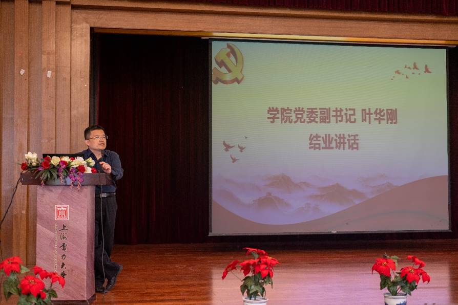 会议开始, 党委副书记叶华刚作结业讲话。首先,叶书记充分肯定了这次培训班中各小组的表现,并对全体学员提三点要求和希望:一是以这次培训作为新的起点,学员们要进一步提高理论水平和个人能力,以实际行动向党组织靠拢;二是亮身份、做表率,发挥带头作用,要端正入党动机,以高标准严格要求自己。三是守牢底线,守住初心,学员们要结合党纪学习教育,学纪、知纪、明纪、守纪,坚守理想信念,增强责任担当,持续深入学习党的最新理论成果,以实际行动践行加入中国共产党的决心。
