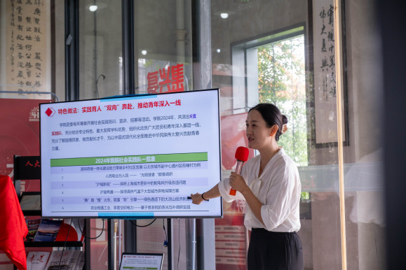 刘紫薇介绍了学院团委开展大学生实践基本情况、特色活动及育人成效,重点介绍了结合学院专业特色、创新实践形式,推动思想政治教育与实践育人相结合的工作做法。