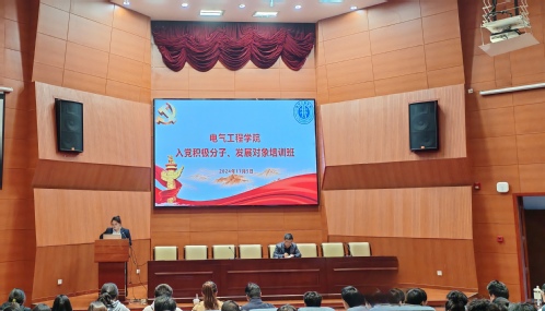 为深入学习贯彻习近平新时代中国特色社会主义思想和党的二十届三中全会精神,进一步做好党员发展工作,11月5日, 第十六期发展对象、第十九期入党积极分子培训班开班仪式及党课在杨浦校区行政楼报告厅举行。学院党委副书记叶华刚、学院专职组织员王海思、本科第三党支部书记朱梦婷及全体学员参加。