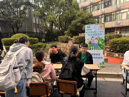 为进一步强化 “一站式”学生社区文化建设与学院学风文化建设之间的联系,发挥党员朋辈榜样示范作用,推进为学院学生提供学业指导,解决学生学业问题,10月30日, 学业辅导室联合研究生第七党支部在杨浦校区三好堂门口,举办了“一站式”学生社区精品项目—本硕博党员学业咨询活动。