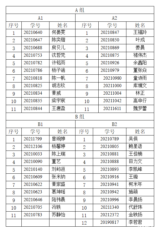 日期 | B1组 | B2组 | 日期 | A1组 | A2组 |