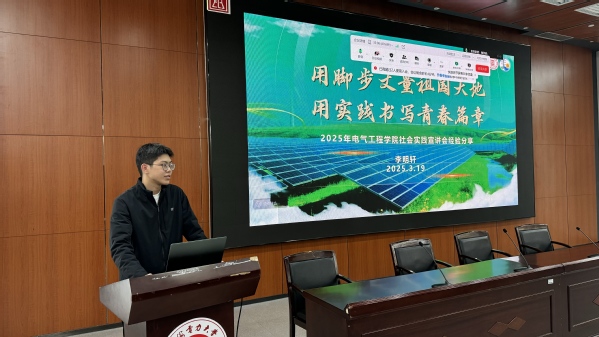 为深化实践育人成效,助力学生社会实践能力提升,3月19日, “知行合一·电亮未来”社会实践专题宣讲会在临港校区学术楼103报告厅举行。学院团委挂职副书记张文文、往期社会实践队长李明轩、队员谢天翊以及学院百余名学生通过线上线下相结合的方式参加宣讲会,会议由院社会实践部负责人张天姿主持。